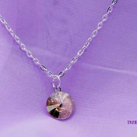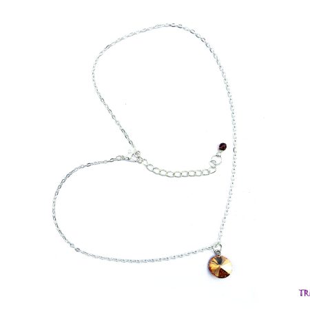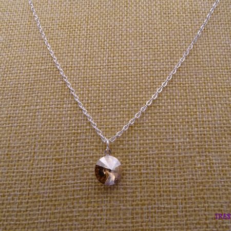 Swarovski Golden Shadow color Rivoli pendant delicately set on a rhodium backing. Paired with a sophisticated silver-plated chain measuring 44cm (17 1/4 inches), this piece exudes elegance and charm.